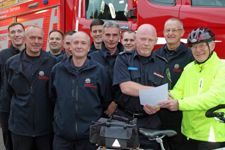The 81 year-old recently completed a 50 mile sponsored cycle ride and he handed part of the proceeds - £1,400 – to the Fire Fighters’ Charity when he visited Church Stretton fire station recently.