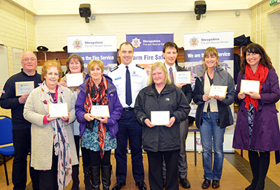 Thanks to the employers from Chief Fire Officer John Redmond: Pictured left to right, are: Clare Hammond (Edward Oliver Ltd); Mike Bugiel (Mid Counties Co-op); Anne Spandrzyk (St Lawrence’s Primary School); Anne Nutting (Bucks Head); Carol Sharpe (Longmynd Service Station); John Mackenzie (Central Garage); Sue Bartle (Spar) and Cathy Thomas (Church Stretton Academy School)