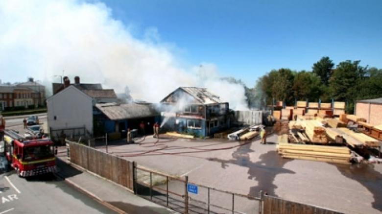 The fire started just before 2pm on Saturday at the Timberline site, Coleham Head and drinkers were evacuated from the Seven Stars pub whilst fire crews fought for two hours to bring the blaze under control.
