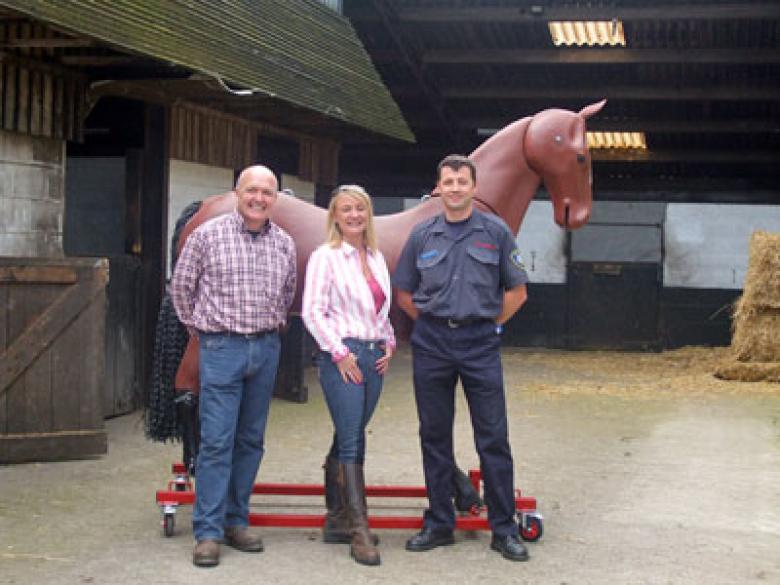 Our new recruit, Bullseye a fully articulated mannequin rescue training horse, arrived at the weekend and has been safely assembled and stabled at Tong Park Farm Livery Yard.