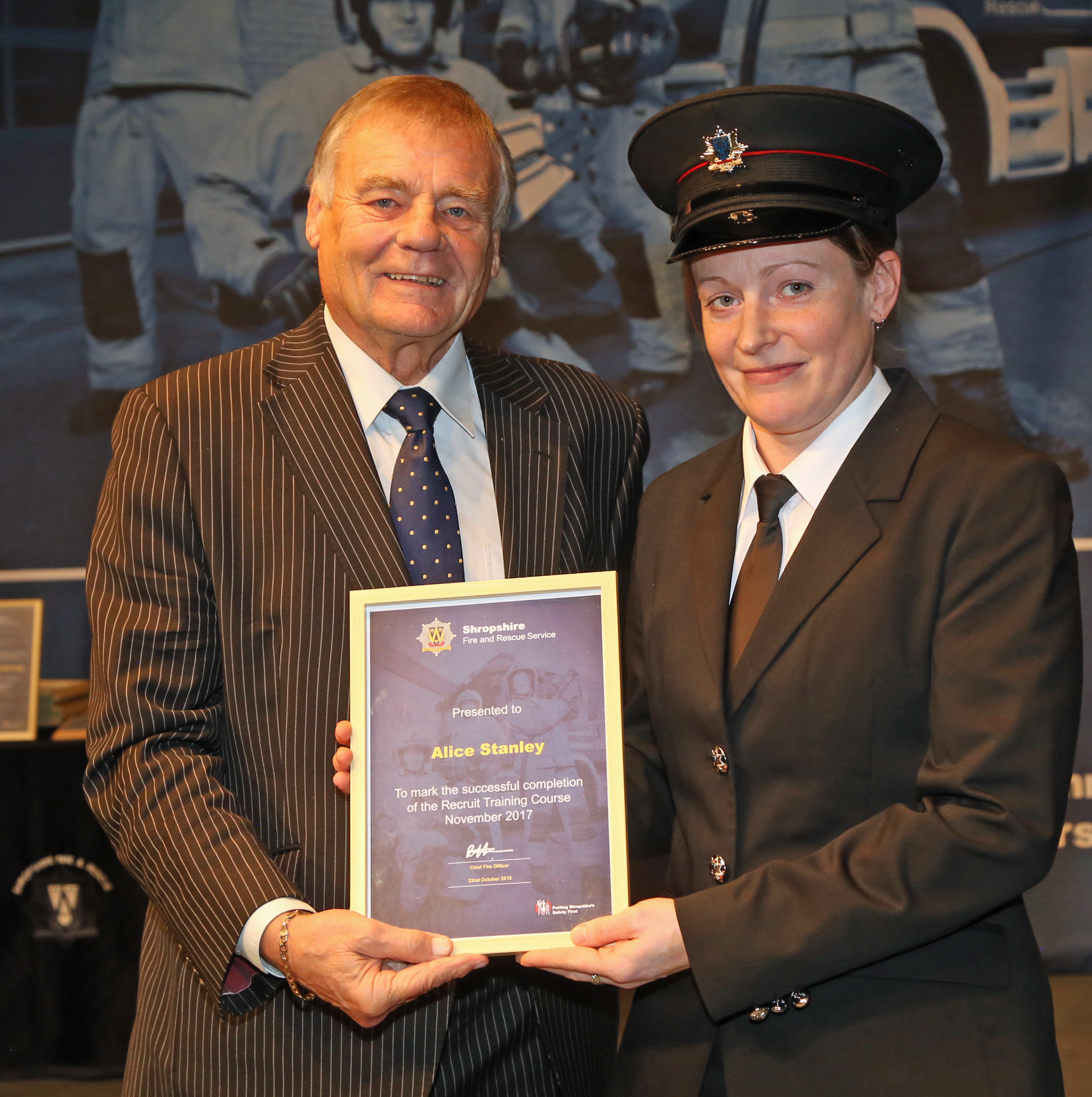 Each of the recruits were presented with “passing out” certificates by the chair of Shropshire and Wrekin Fire Authority, Councillor Eric Carter, who said: “Our firefighters are often in the frontline at dangerous and tragic events. They are special people and we should all be very proud of them.”