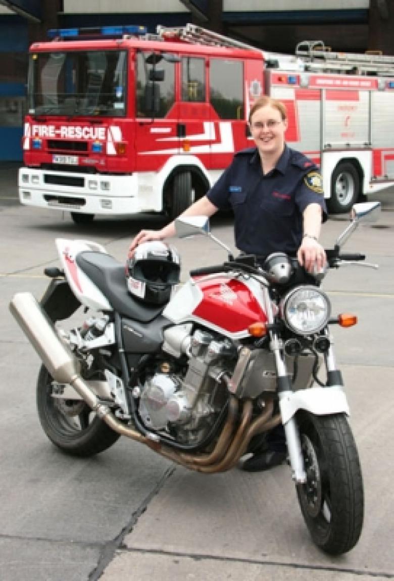 Fire control operator Sally Barnett is all geared up for the motorbike charity ride