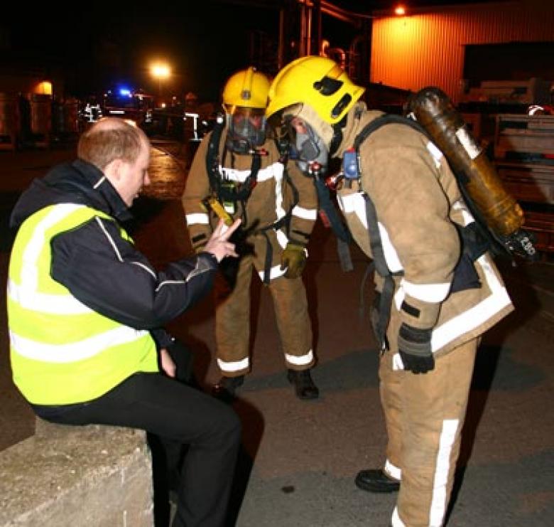 The firm’s health and safety manager, Andrew Holding, played the part of an employee who raised the alarm after staggering out of a business unit where ammonia is used to cool large fridges. He later stressed that the scenario would not happen in real life because of strict safety procedures at the plant.