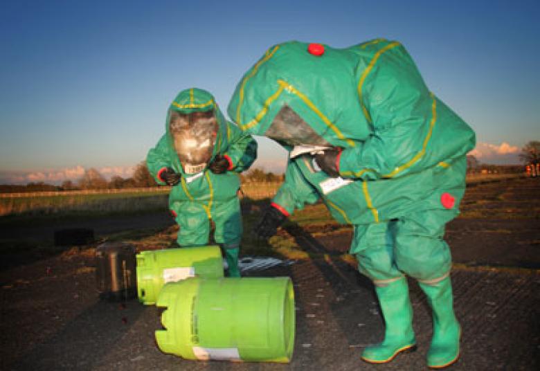 Shropshire firefighters in chemical protection suits dealt with suspect waste leaking from drums dumped at a county airfield – but it was just a regular training exercise for Shropshire Fire and Rescue Service.