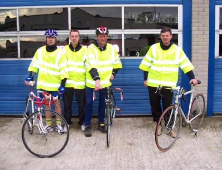 The first stint from Whitchurch to Albrighton was cycled by Trevor Williams, Paul Slattery and Michael Oliver, who as the organiser, also cycled from Albrighton to Ludlow together with Andy Williams, Shenton Gwilliam and Rhys Davies. The final leg of the journey was completed by Graham Dudley, Darran Morris, Dan Morris and Graeme Barker who cycled from Ludlow to Clun.