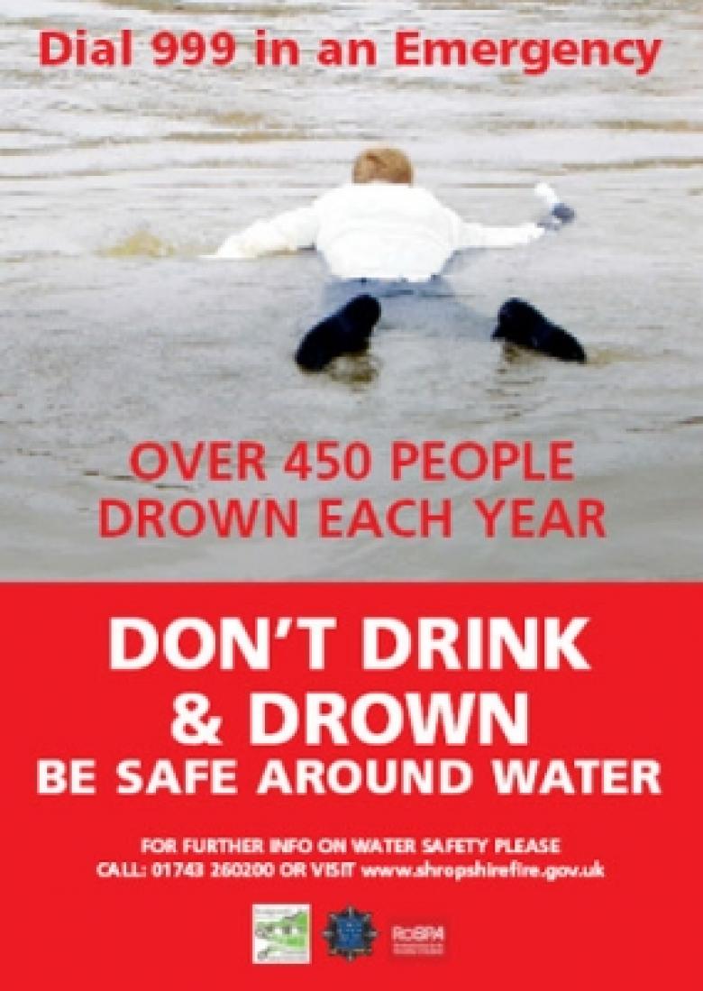 Now posters bearing the Don't Drink and Drown message are going up at locations around the district and at sites by the side of open water.