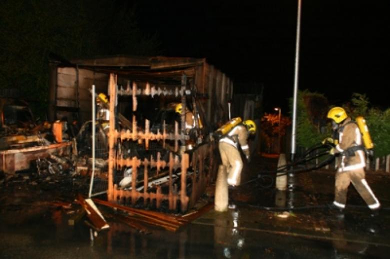 The Officer in Charge was then informed that there were possibly acetylene cylinders in the garage. Covering jets were put in place to extinguish the fire and cool any cylinders, and a cordon around the incident was set up. Local residents were informed to stay in their properties.