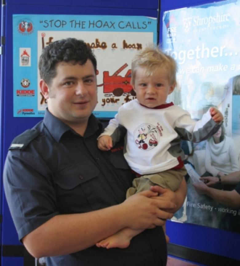 Retained Firefighter Ashley Brown pictured with his son Cameron at Bridgnorth Fire Station Open Day in September, 2006