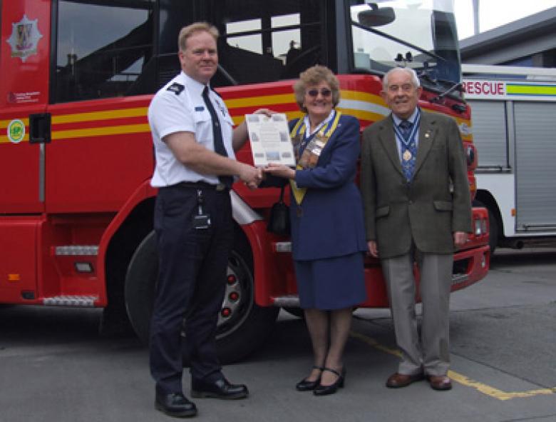 “One of the fire appliances has been sponsored by Reghin Rotary Club in Romania and the Rotary Club of Shrewsbury is delighted to be invited by Assistant Chief Fire Officer Steve Worrall to make contact with our fellow Rotarians in Romania and to send greetings to them by means of the scroll and a pennant.