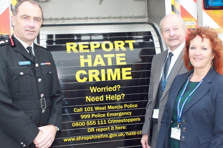 A hate crime reporting centre has been set up at the fire service’s Shrewsbury headquarters in St Michael’s Street and posters are being displayed on fire appliances.