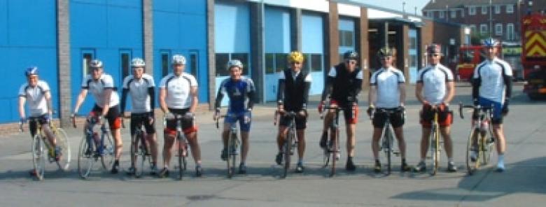 The team of ten firefighters who are cycling from Lands' End to John O'Groats stopped off in Shrewsbury overnight before heading North to Preston this morning.