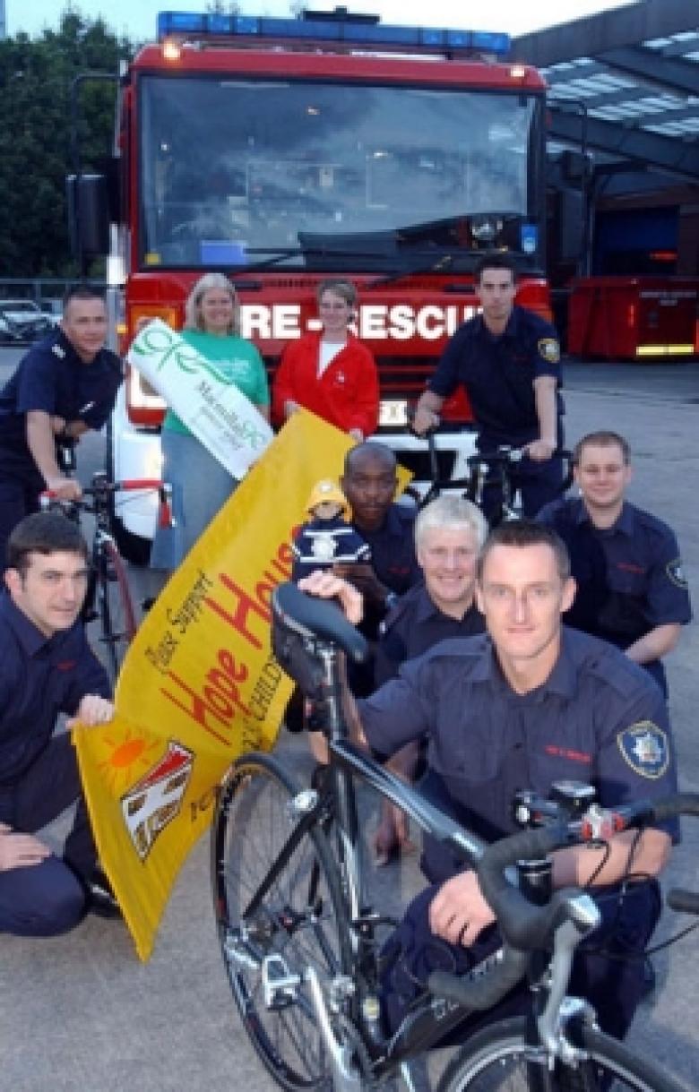 Cycling the route will be Firefighters' Ken Holder, Graham Oliver, Kris Mullins, Dickey Brazier, Phil Davies, Ian Gunstone, Neil Wilson, Kev Rogers and Barry Lucas with a reserve list of a further 3 riders.