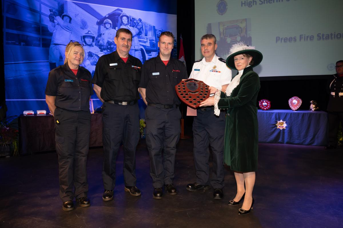 The High Sheriff’s Good Citizen Award is given to an individual or group that has made a substantial contribution to society. This year, Jeremy Chambers and the crew at Prees Fire Station were the recipients due to maintaining emergency response availability throughout a period of staff shortages.