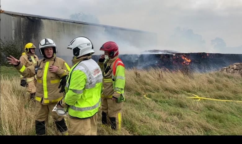 Six crews attended the fire, yesterday (Thursday 28 October), which involved three barns containing; straw, potatoes and machinery.
