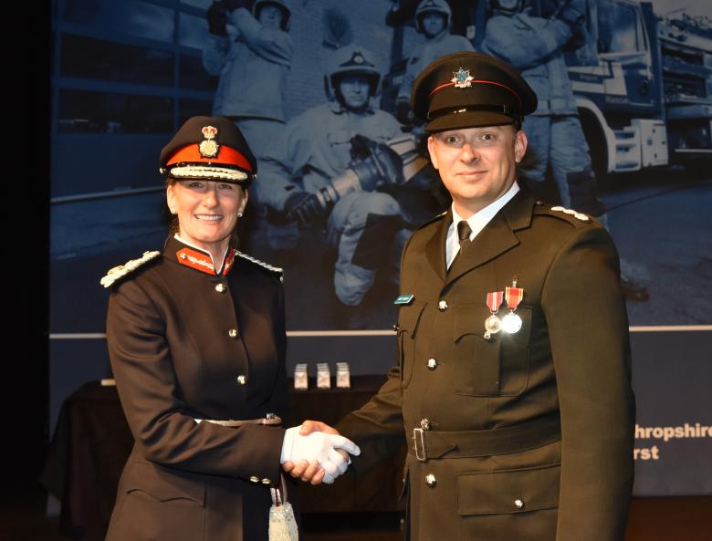 Theatre Severn hosted a long service and good conduct awards ceremony last night for Shropshire Fire and Rescue Service (SFRS) staff who have achieved 20 or 30 years service. Miniature medals for family members of serving firefighters were also presented by Councillor Eric Carter, Chair of Shropshire and Wrekin Fire Authority.