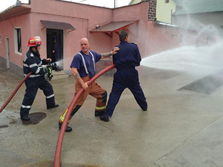 They were familiarising Romanian firefighters in how to use equipment on board two UK fire engines transported to their country in a 1,800 mile aid trip destined to save lives in Romania's rural villages.