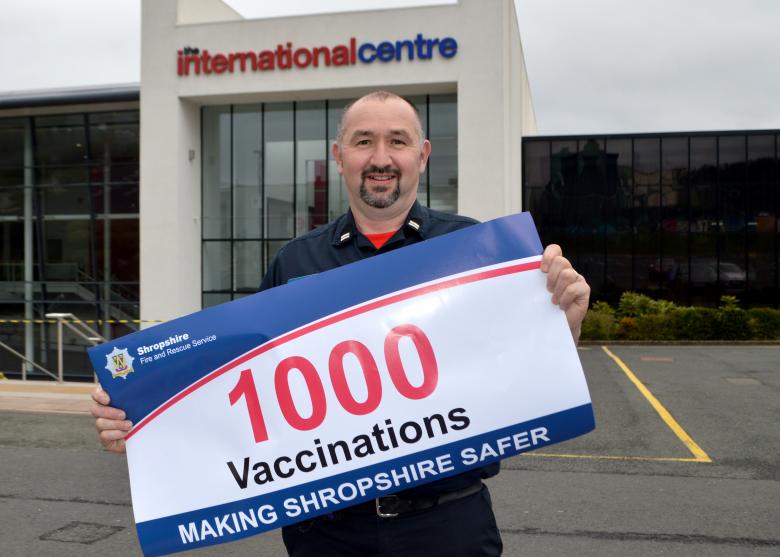 Around 60 Shropshire Fire and Rescue Service staff – both operational and support - have worked with NHS partners to train and be redeployed at three centres across the county with one staff member celebrating his one thousandth jab today.