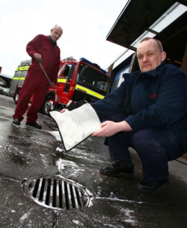 Oils are now recycled along with oil filters where not only the oil is removed and re-used but also metal inside the 80 oil filters used on 50 fire appliances each year. A storeroom floor where oil is stored has been waterproofed to capture any spills.