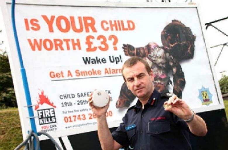 Every minute scores of drivers see the eye-catching poster with an image of a charred and blackened doll and the words: "Is Your Child Worth £3? Wake Up! Get A Smoke Alarm."